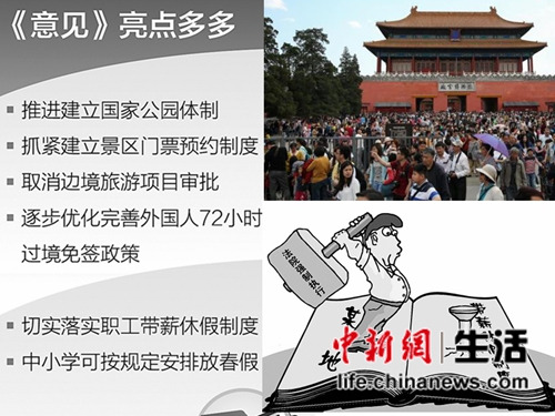 中新网8月26日电(生活频道 刘旭辉) 日前,国务院公布《关于促进旅游业改革发展的若干意见》,提出要强化全社会依法休假理念,将带薪年休假制度落实情况纳入各地政府议事日程,作为劳动监察和职工权益保障的重要内容。《意见》鼓励职工结合个人需要和工作实际,分段灵活安排带薪年休假,提出“高等学校可结合实际调整寒、暑假时间,中小学可按有关规定安排放春假,为职工落实带薪年休假创造条件”。带薪年假怎么休,事关每个人的权益,此消息一出,引起了社会各界的关注和讨论,热议的焦点,则是宏观层面的关注和重视,是否能让长期浮于空中的带薪休假制度真正落地。
