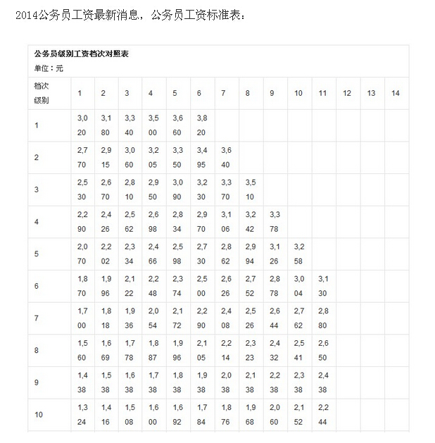 2014公务员工资改革最新消息:公务员工资标准表