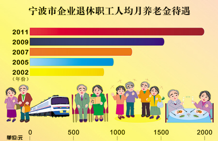 从2002年开始,宁波企业退休人员养老金几乎年年都有提高,从一开始的60至70元,到后来100多元,再到现在的200多元,增长的金额越来越高。