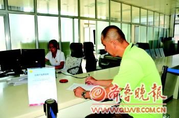 一位市民办理社会保险登记申请表。本报记者赵苏炜摄