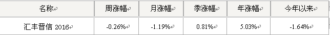 汇丰晋信2016基金(540001)业绩表现