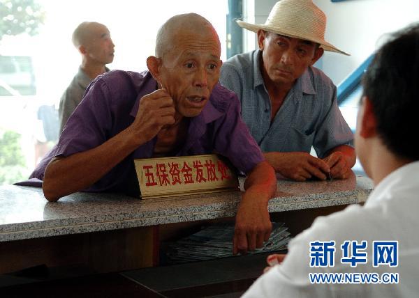 这是河南省新县的一位农民在领取五保金时向工作人员咨询(资料照片)。新华社记者 赵鹏摄