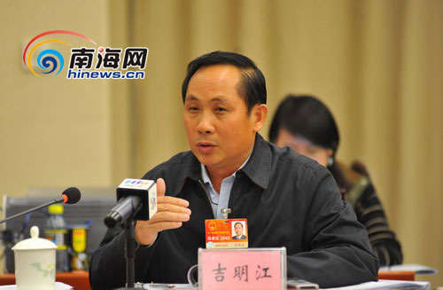 海南团代表、东方市市长吉明江提交建议,完善被征地农民养老保险政策,将被征地农民其失地面积未达到50%的农民也纳入参保范围。(南海网特派记者 李庆芳 摄)