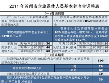 普遍调整包括:一、按照本人本次调整前基本养老金(生活费,下同)10%增发基本养老金;二、对本次调整前基本养老金水平低于1470元的人员,在按本人本次调整前基本养老金10%调整后再统一增发32元,此项增资和按本人本次调整前基本养老金10%增发额相加不得高于147元;三、对2010年12月31日前满70周岁及以上(年龄以办理退休手续时确定的出生年月为准)的退休、退职和按月领取生活费人员,按照退休类别和年龄段再分别增加20-50元不等的基本养老金。