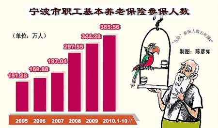 宁波特色的“社保套餐”把全市外来务工人员全部纳入了社会保险体系,新型农村养老保险制度让广大农民也能实现老有所养,标志着以养老、医疗、低保为重点的社会保障制度已覆盖到全市的所有人群,在全国率先进入了“全民社保”时代。