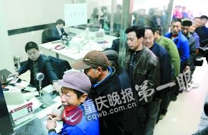 合川张桥镇的老年参保人员正在排队领取养老金(资料图片) 记者 钱波