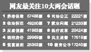 调查结果显示,退休养老成为网友最为关心的话题,而反腐倡廉更连续3年入选10大关注热点。