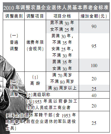 据了解,此次调整的对象为我省2009年12月31日前已按规定办理退休手续的企业退休人员。调整时间从2010年1月1日起执行。