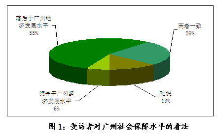 1、过半数市民认为广州社保水平落后于经济发展水平,低收入者和高学历者持此看法更多