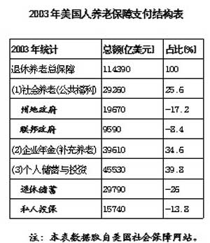 这是由美国传统的家庭自我保障逐步发展演变而来的,它被看作是美国社会安全网的第三条腿或第三支柱(thirdpillar)。 在美国,大多数的金融财务顾问认为,人们大约需要退休前收入的70%来维持一个合适的、退休后的生活标准。如果你退休前拥有美国人的平均收入,则你的社会养老保险支付给你的退休金将仅相当于你退休前收入的大约40%。你将需要你的企业年金或储蓄与投资来补充。 美国人的个人退休储蓄与投资主要分两类:一是以退休养老为目的“退休储蓄账户”,这是一种特殊的储蓄存款,它要求你在工作期间从工薪中提取存入一种叫IRA(个人退休账户)的专户,可延迟纳税,但该账户存款只能在你年老时方可动用;二是以家庭或个人为投资主体,向商业保险公司定期缴纳保费来购买人寿保险或养老保险,这叫保险投资。 由于美国国民收入水平高,人均GDP达4万多美元,再加上保险市场极其发达,因此,美国人购买商业保险来养老也是极流行的投资方式。 从美国人的养老供给结构来看,企业年金与个人退休计划占大头,二者合计占据了美国人养老支付比例的74%,也就是说,企业和个人承担了美国人养老负担的3/4。相反,政府承担养老的负荷只占全社会的1/4,即25%。这就是“三条腿”的美国人养老保障体系。 由此可见,企业是美国人养老的主要支柱和坚强后盾。当然,不同的企业给予雇员的福利待遇是有较大差别的,因此,对于雇员而言,找一个好企业,就等于有了一个可终身依靠的养老保障。(武汉科技大学文法与经济学院教授)