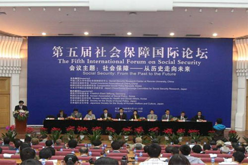 9月12-13日,由中国人民大学中国社会保障研究中心、中国社会保险学会等主办的第五届社会保障国际论坛在中国人民大学逸夫会堂大报告厅隆重举行。来自中国、日本、韩国、英国、德国、瑞典、芬兰等国家及我国香港、台湾地区的130多所高等院校及有关部门、机构代表近400人出席了论坛,其中境外专家学者约80人。中国全国人大常委会副委员长蒋树声发来贺信,人力资源和社会保障部、民政部、财政部、全国社会保障基金理事会等中央部门负责人分别在论坛开幕式上发表热情洋溢的致词,中国人民大学常务副校长袁卫代表学校致欢迎词,论坛主席、中国人民大学教授郑功成主持了开幕式,并致词闭幕词。