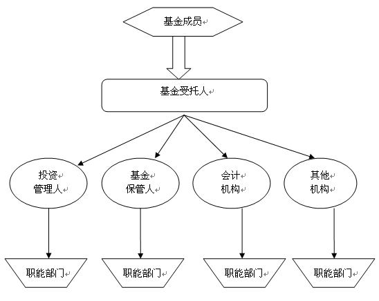 目前大部分发达国家的职业养老金计划都采取的主要模式。在这种模式下,养老基金的实际所有者委托一个托管人(如基金会、信托基金或共同基金的董事会(或管理委员会))全面负责基金管理;董事会(或管理委员会)虽然拥有管理基金的法定责任,但一般不直接参与管理活动,而是把具体的管理活动委托给其他机构,比如:把投资运营委托给管理公司或基金经理,把保管业务委托给银行或保险公司,把审计业务委托给会计师事务所等。当基金规模比较大时,一些基金管理活动也可以由董事会(或管理委员会)下属相关职能部门承担,但董事会(或管理委员会)一般也不干预具体的基金管理活动,而是只制定一些管理政策。基金管理公司、基金经理或董事会(或管理委员会)下属相关职能部门的内部也可能由于复杂的授权或分工而形成另外一个层次的委托-代理关系。这样,实际上形成了至少三个层次的委托-代理关系构,每个层次都可能产生委托-代理问题。