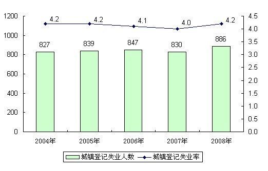 全年城镇新增就业人员1113万人,有500万下岗失业人员实现了再就业,就业困难对象再就业143万人。年末城镇登记失业人数为886万人,城镇登记失业率为4.2%。年末全国已有99.65万户零就业家庭实现每户至少一人就业,占零就业家庭总数的99.9%。组织3.4万名大学生从事“三支一扶”的工作。