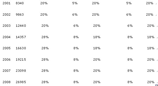 1992年至2008年度社平工资及缴费比例详见下表(国家和市里另有规定的从其规定)