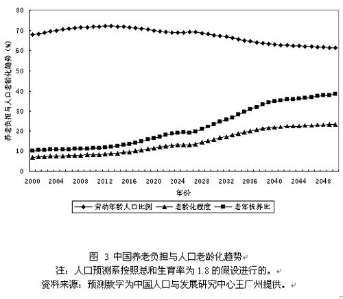 2006年全国养老保障基金收入为6309.7亿元,支出是4896.7亿元,历年累计节余仅为5488.9亿元;只是一年的支出规模。然而,现收现付制是建立在劳动年龄人口比重高、人口抚养比低以及生产率高的基础上的,在生产率水平尚低,同时人口抚养比即将提高的条件下,这个制度的可持续性就值得怀疑了。