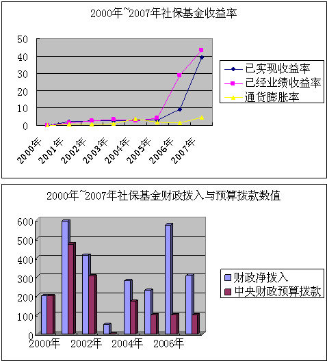 从2001年社保基金开始投资运作以来至2004年,社保基金共经历了4个完整的投资年度。按资本加权计算,4年间社保基金累计收益率为11.82%,同期通货膨胀率为5.04%,累计收益率高于同期通货膨胀率6.78%。全国社保基金投资回报超过同期通货膨胀水平,实现了保值增值目标。到2007年底,全国社保基金按市值计算总资产为5161亿元,预计到2010年可超过1万亿元。近5年,全国社保基金年化实现收益率为10.7%,比同期年均通胀率2.59%高出8.11个百分点。