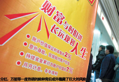 尽管很多保险公司都表示这种情况表明了市场的不成熟,但为了获得更多份额,却不得不顺应客户需求,加大分红、万能以及投连等投资型险种的比例。这同时对保险公司的资金运作水平提出了更高要求,也使得很多保险公司在牛市中悄然加大了权益投资比例,这也无疑加大了其运营风险。
