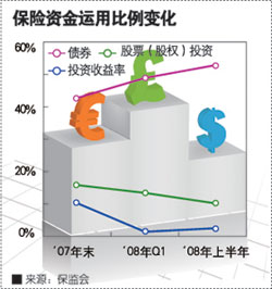 好在对风险嗅觉更为敏锐的保险公司已经开始对低迷的市场做出反应。中国平安从今年上半年开始,便大幅调整了其资金运用渠道,其中与股市相关的权益投资比例从21.4%下降至12.2%。中国平安总经理张子欣日前在该公司中报发布会上明确表示,公司下半年的投资策略将“降低股票市场对平安的影响”,改而“加大对债券等固定收益类产品的投资”。在寿险业务中,平安在上半年也加大收缩以银行为重要渠道的分红、万能保险业务。