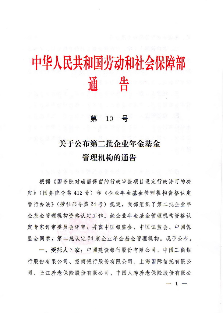 “关于公布第二批企业年金基金管理机构的通告(第10号)”由中国社保网收集整理编辑。