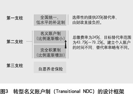 这种转轨养老名义账户制方案的设计和构想(图3),其要点可以概括为以下几点: