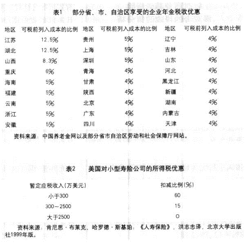 所得税。与其他业务一样,保险公司开展商业养老保险业务的所有保费收入计入应纳税所得,并允许在税前扣除规定比例的成本费用和责任准备金。这一规定适用于所有的保险公司,对不同性质、规模的保险公司并无区别。