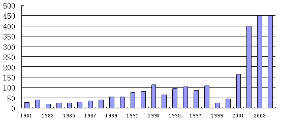 近年来DB型计划的巨额索赔导致担保公司的财务状况急剧恶化。在2002年底,担保公司累计赤字为36亿,在2004年,单雇主计划担保项目的净损失总计121亿,到2004年底,累计赤字已达到233亿美元,比2003年翻了一番(见图3)[25]。担保公司对纳税人构成了巨大的潜在负担,因为当担保公司财政赤字积累到其无法维持的时候,国会和纳税人最后不得不保释它,正如美国联邦存款保险公司经历的那样。