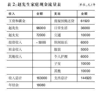 赵先生家庭属于中等收入家庭,两人讲究生活质量,花销比较大,年节余比率为11%,家庭积累财富的速度不快。投资与净资产的比率偏低,负债比率和流动性比率都还比较适当。(见表一、表二)但随着赵先生夫妇父母的年龄增加和女儿甜甜长大,家庭负担将会逐渐增加。而女儿甜甜刚出生不久,不管将来发生什么事情,赵先生和太太都希望甜甜能有足够的生活费和学习费用。此外,赵先生还是个超级车迷,希望能够在近几年内购置一辆价格15万左右的小轿车。
