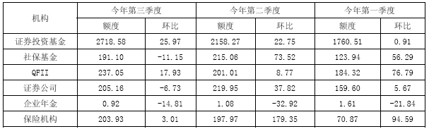 总体看,各类机构的投资状况存在较大差异,但整体增仓趋势与第二季度相比出现明显的下降。