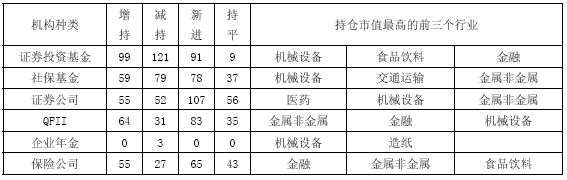 六类机构股票持仓状况和行业情况汇总