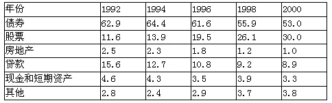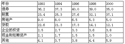 3.国外保险资金根据经济周期的波动而进行灵活的资产配置调整。根据我们对国外保险资金投资组合的动态变化情况分析,国外保险资金的投资组合并不是一 成不变的,而是根据经济周期的变化进行灵活动态调整的(见表1、2)。根据瑞土再保险公司的研究资料,从1992年到2000年,在西方发达国家处于一个 经济周期的上升阶段,美国和欧洲保险资产中,股票的投资比例分别从1992年的11.6%和23.4%上升到2000年的30%和37.1%,权益类投资 的比例有较大幅度的提高。而债券投资比例均有不同程度的下降。