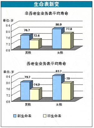 据了解,新生命表分为“非养老金业务表”和“养老金业务表”两套,每套又分男、女两张,共四张表。保监会副主席魏迎宁曾表示,新生命表对寿险产品的价格影响有限,并总体上降低了对寿险公司法定准备金和偿付能力的要求,消费者匆忙投保并不划算。此前,部分寿险代理人曾经借新生命表的出台大打促销牌。