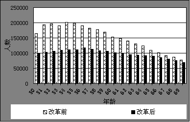 3、推迟了退休年龄。改革后,由于养老金的给付水平与退休年龄具有直接的内在精算关系,所以,许多工人推迟了退休年龄。在新制度中,对那些原本想62岁退休而现在则决定65岁退休的人来说,他们的养老金给付水平每年将增加6%;这毫无疑问是新制度直接影响了工人的退休决策,例如决定57岁退休的人数下降了15%(见图3)15。