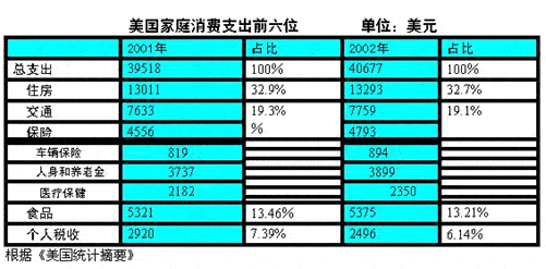 美国家庭消费支出前六位