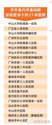 深圳市医保参保人持医保卡到21家市外医院就医,无须现金垫付,均可实现实时结算。