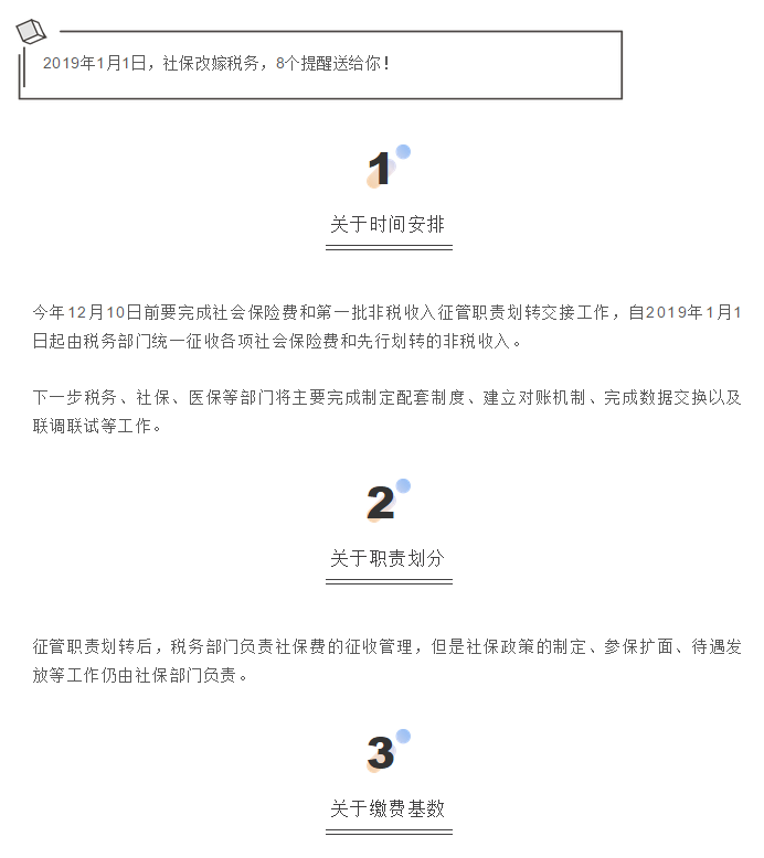 “2019年1月1日,社保“改嫁”税务,8个提醒送给你!”由中国社保网收集整理编辑。