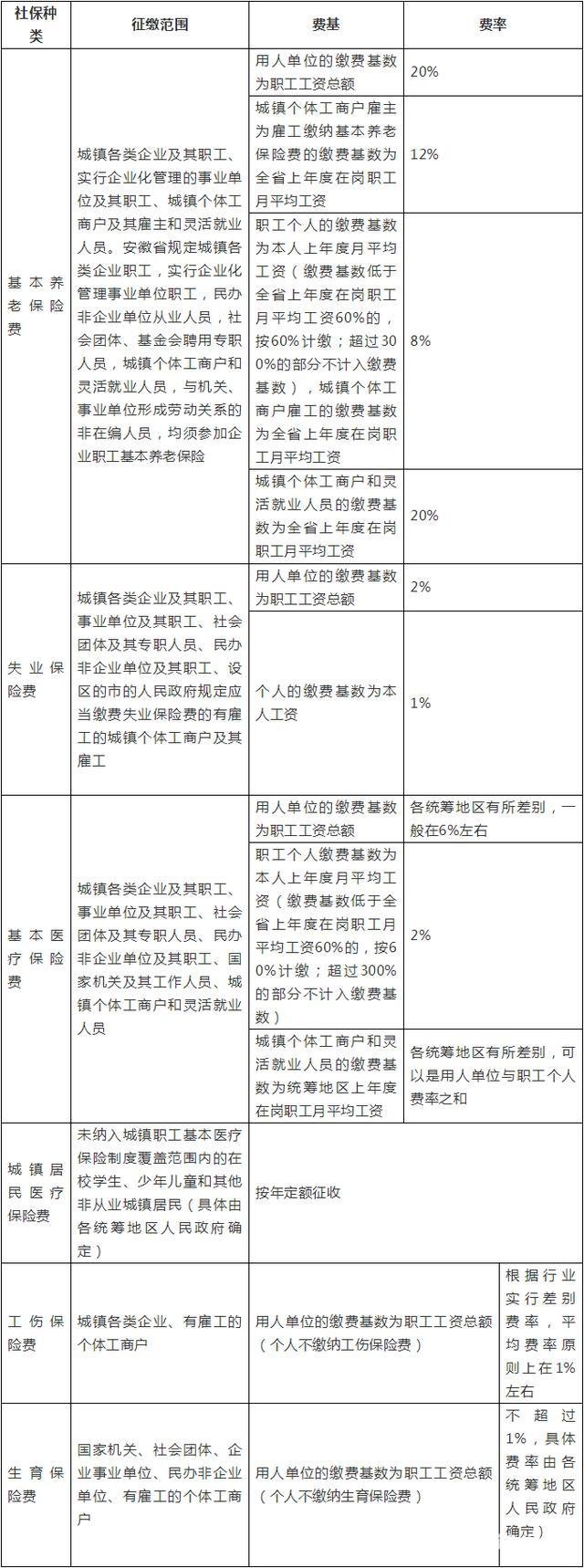10.职工基本养老缴费比例是,用人单位按工资总额的20%缴费,职工个人按本人工资的8%缴费,各地已经适当降低。