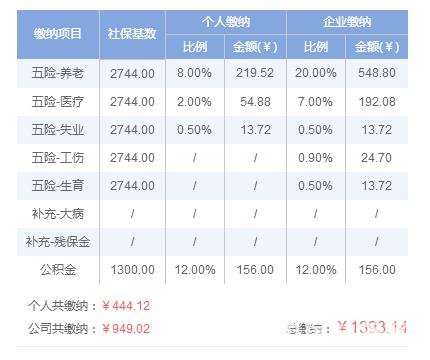 单位五险一金最低缴费金额=548.8+192.08+13.72+24.7+13.72+156=949.02元