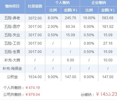 公积金按照1634.00元做为最低缴费基数。