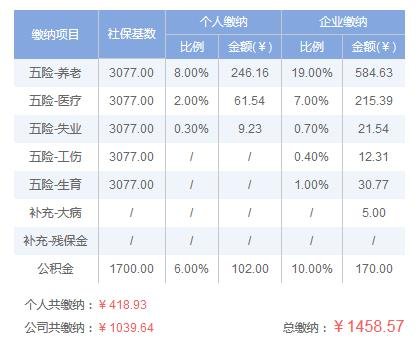 五险一金缴费金额=缴费基数*缴费比例