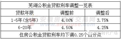 芜湖响应省部《通知》下调公积金贷款利率0.25% 30万贷款30年近省16000元