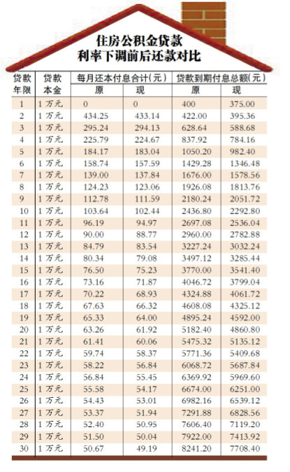 此次调整前,5年期以下的公积金贷款利率为4%,5年期以上的公积金贷款利率为4.5%。自2014年11月22日起,下调住房公积金个人贷款基准利率0.25个百分点。其中,5年期(含)以下的住房公积金个人贷款利率,由现行的4%下调至3.75%;5年期以上的住房公积金个人贷款利率,由现行的4.5%下调至4.25%。