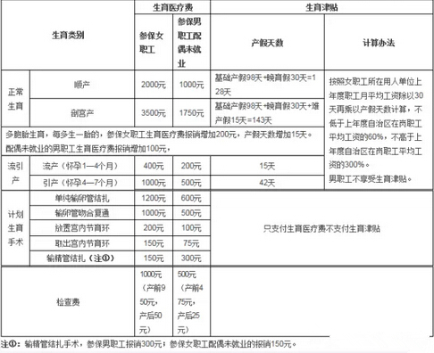 生育保险待遇支付类别及标准: