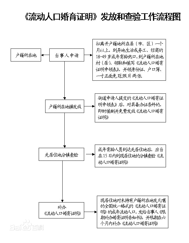 流动人口婚育证明-办证范围 流动人口婚育证明在现居住地(现居住地不是户籍所在地,跨县(市)以上行政区域间的流动)居住一个月以上,从事务工、经商等活动或以生育为目的的异地居住,可能生育子女的已婚育龄妇女;要求育龄妇女(15——49岁的女性人口)和流往省外的男性成年流动人口应当在离开户籍地前,应当办理《流动人口婚育证明》。