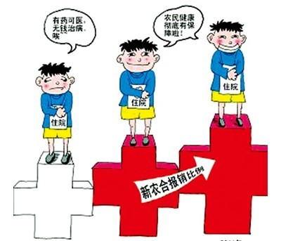 这是我国政府历史上第一次为解决农民的基本医疗卫生问题进行大规模的投入。从2003年开始,本着多方筹资,农民自愿参加的原则,新型农村合作医疗的试点地区正在不断的增加,通过试点地区的经验总结,为将来新型农村合作医疗在全国的全面开展创造了坚实的理论与实践基础,截至2004年12月,全国共有310个县参加了新型农村合作医疗,有1945万户,6899万农民参合,参合率达到了72.6%。 按照“十一五”规划的要求,新型农村合作医疗到2010年的覆盖面达到农村的80%以上。2011年2月17日中国政府网发布了《医药卫生体制五项重点改革2011年度主要工作安排》。这份文件明确,2011年政府对新农合和城镇居民医保补助标准均由上一年每人每年120元提高到200元;城镇居民医保、新农合政策范围内住院费用支付比例力争达到70%左右。